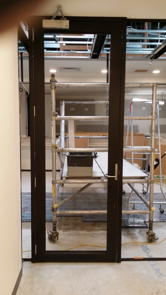All black aluminium, with 25mm glazing channels. Some corner parts will have glass on glass silicon joins… these photos are taken before glazing has occurred.