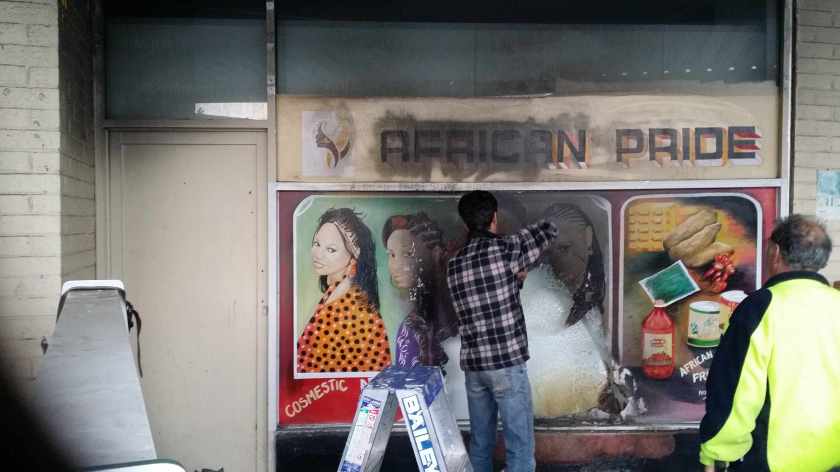 the African shop in Woodville had been damaged by fire. all that artwork was handpainted on the glass.