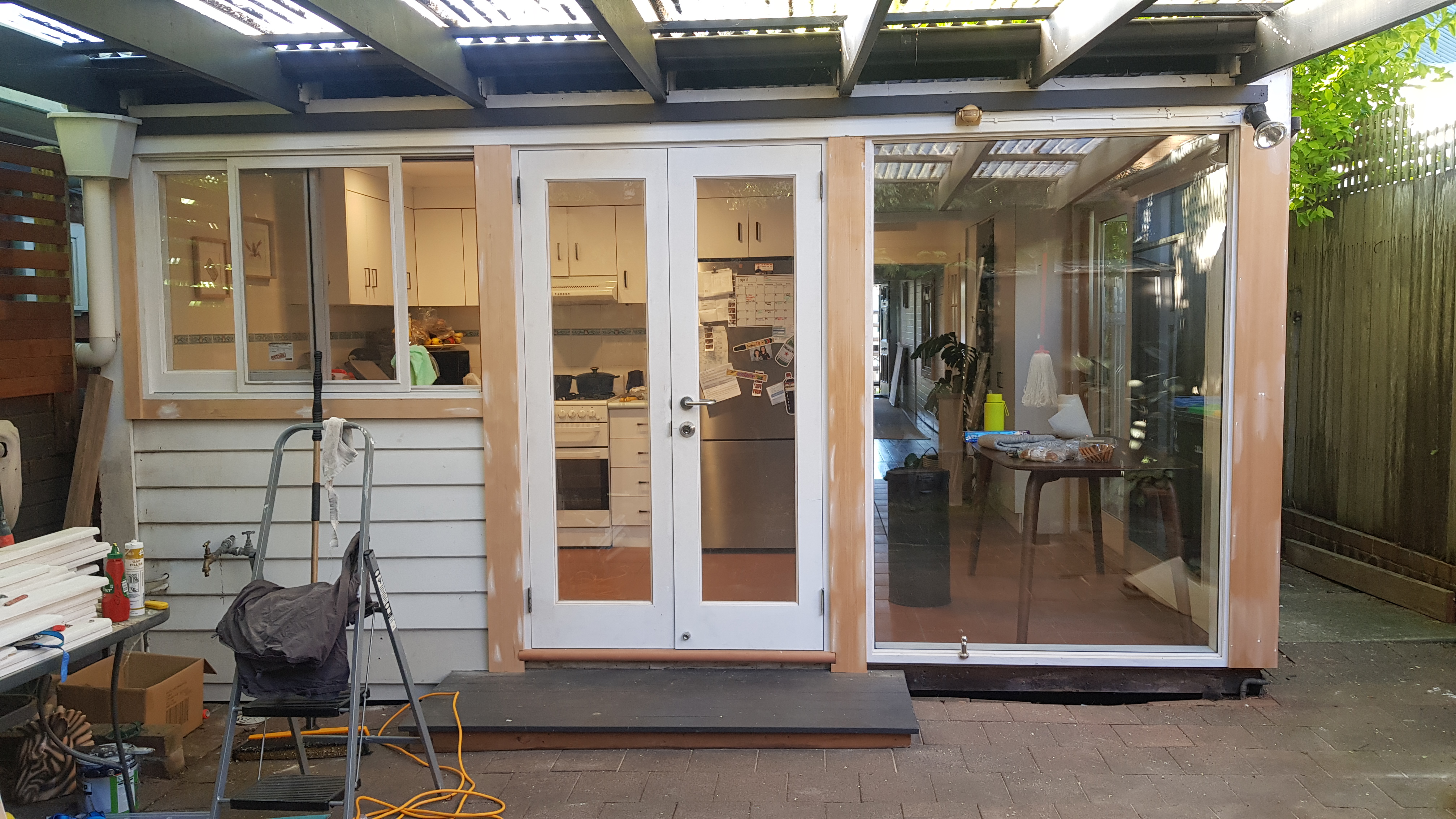 we spend the Easter break installing 3 hinged doors, a sliding door, new sashes for front existing windows, 2 new spiral balance hung lift up windows, an awning window, a large fixed lite window and a sliding window.