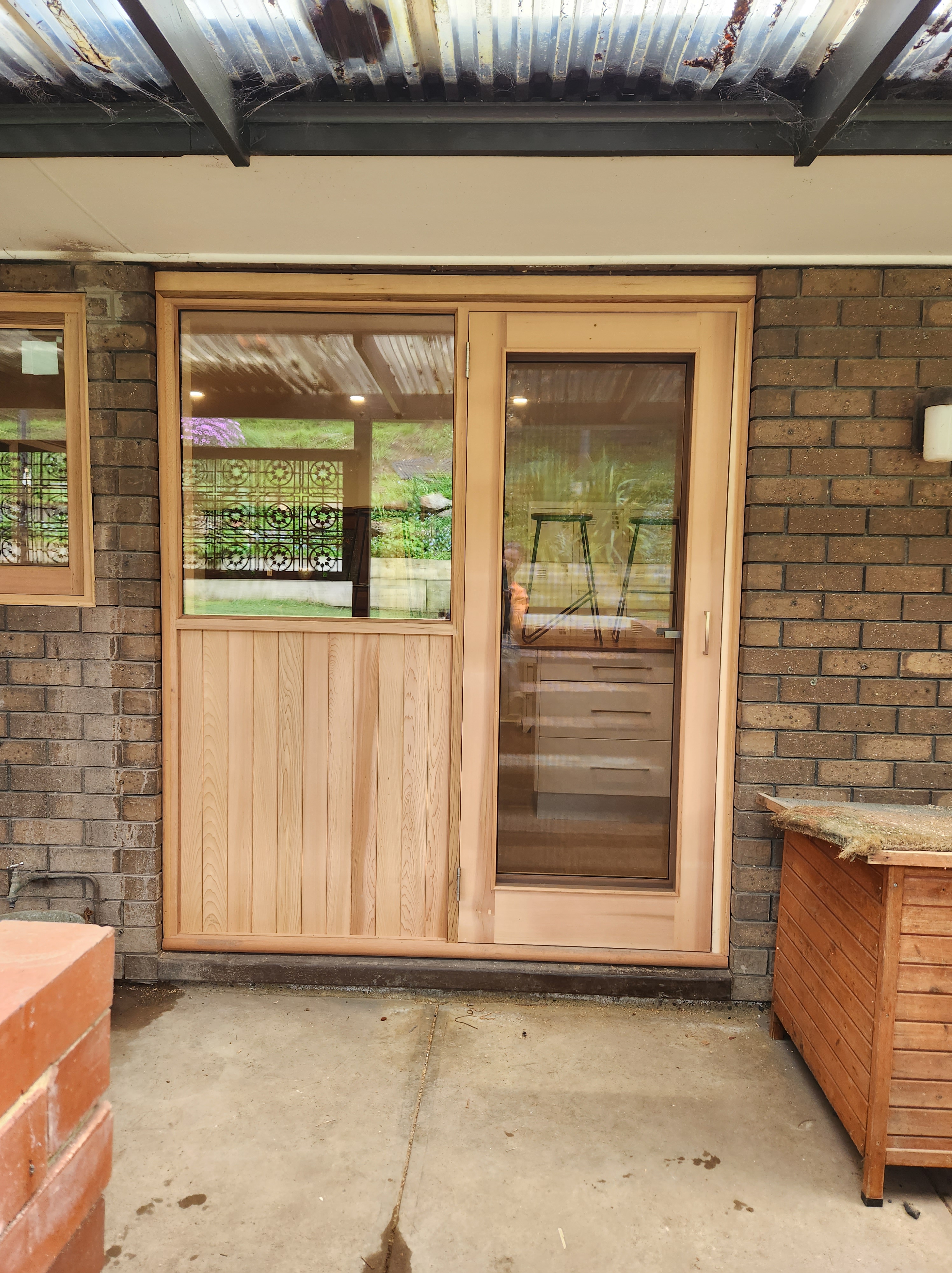 Cedar panelled doorframe/ door/ awnings Uncategorized Share this: Click to share on X (Opens in new window) X Click to share on Facebook (Opens in new window) Facebook Like Loading... Related