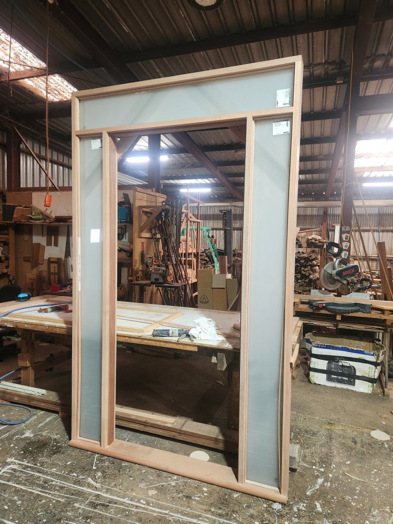 meranti doorframe. hardwood sill. sidelites and a hi lite. white translucent glass