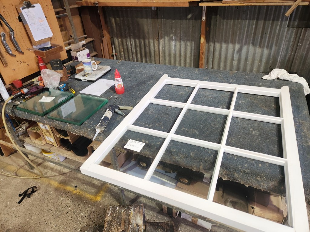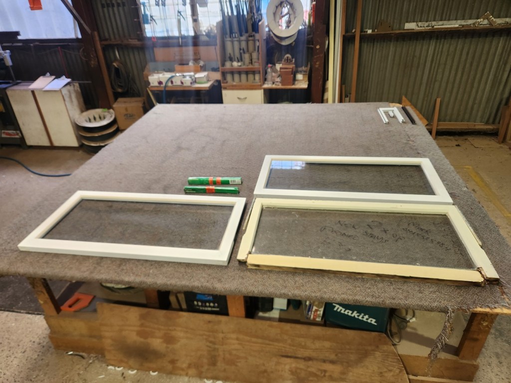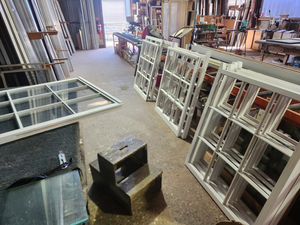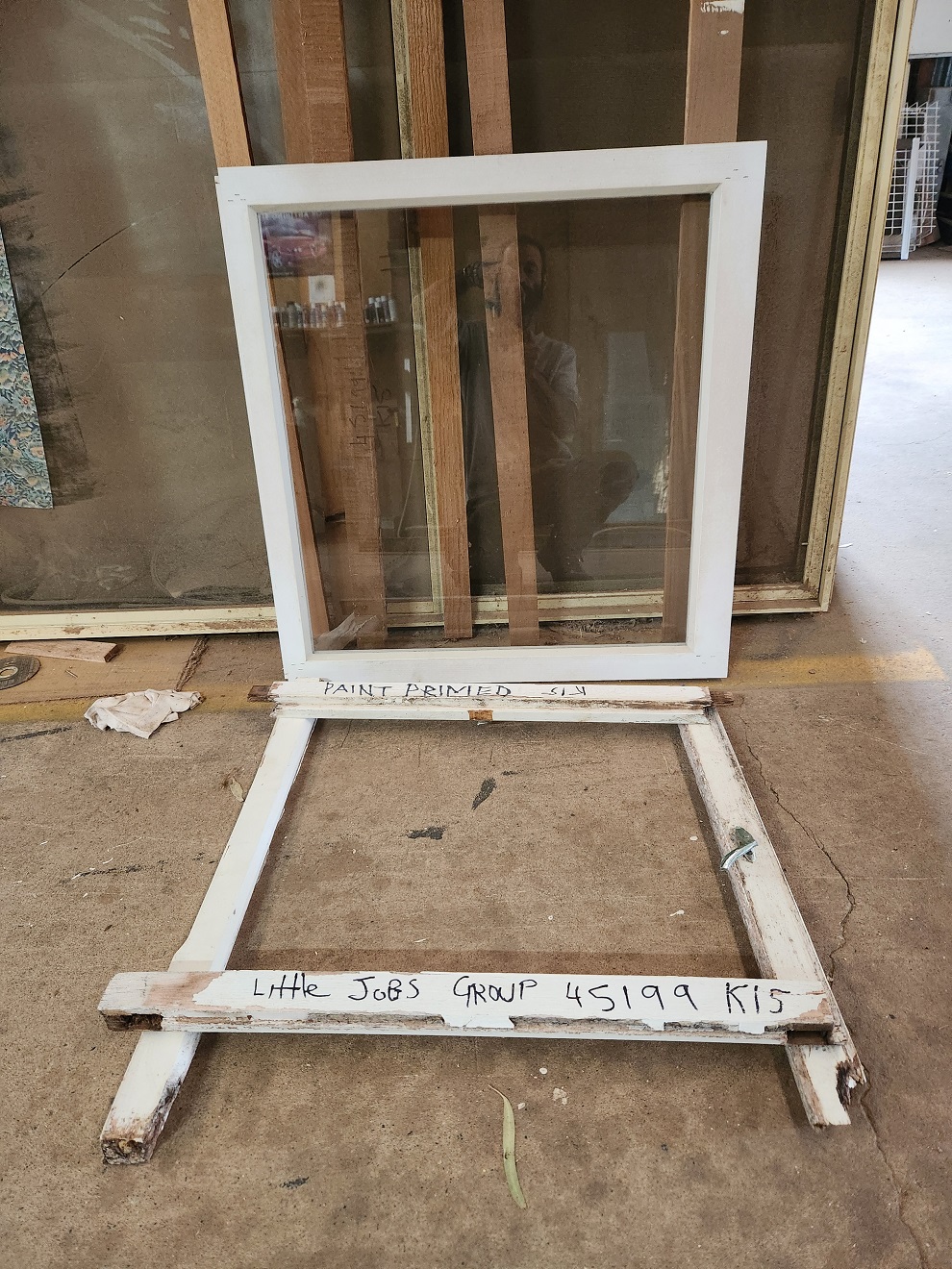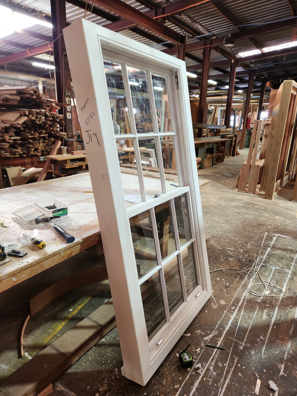 All done with new arcatraves, but keeping the bullnose sills and linings. changed from 3mm float to 6.5 hush laminate glass. no painting/raw frame – painting by others once we go.