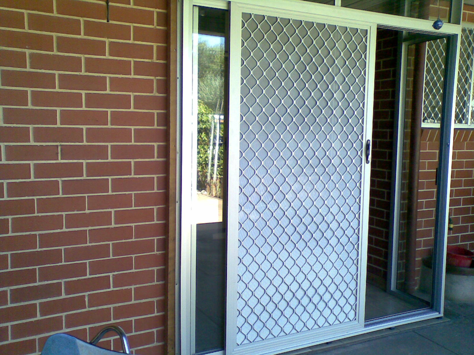 Clear anodise security door with 007 diamond grille and DVA restricted vision mesh.