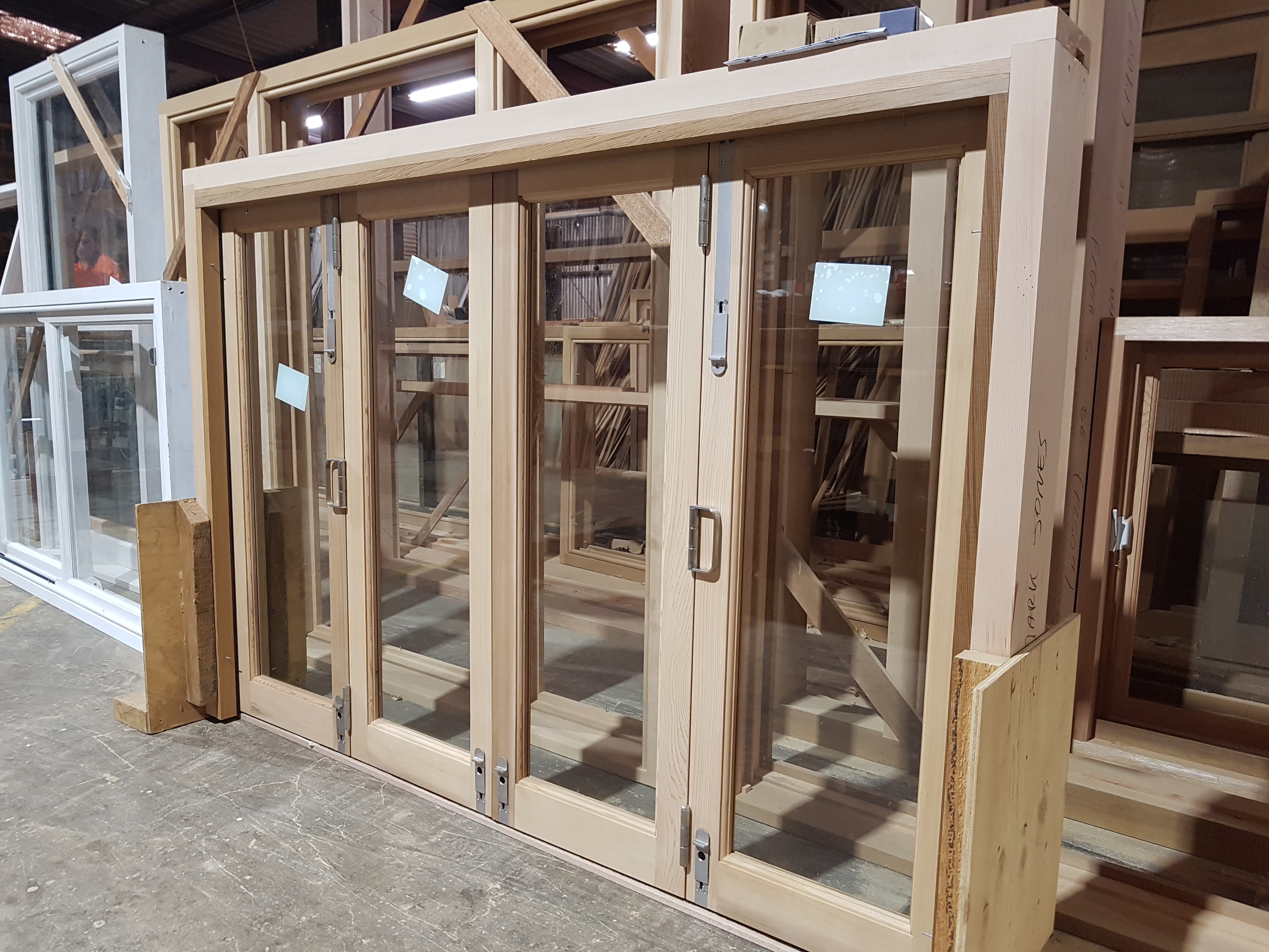 Just finished assembling this bifold window with no sill. Ready for the client to pick it up.