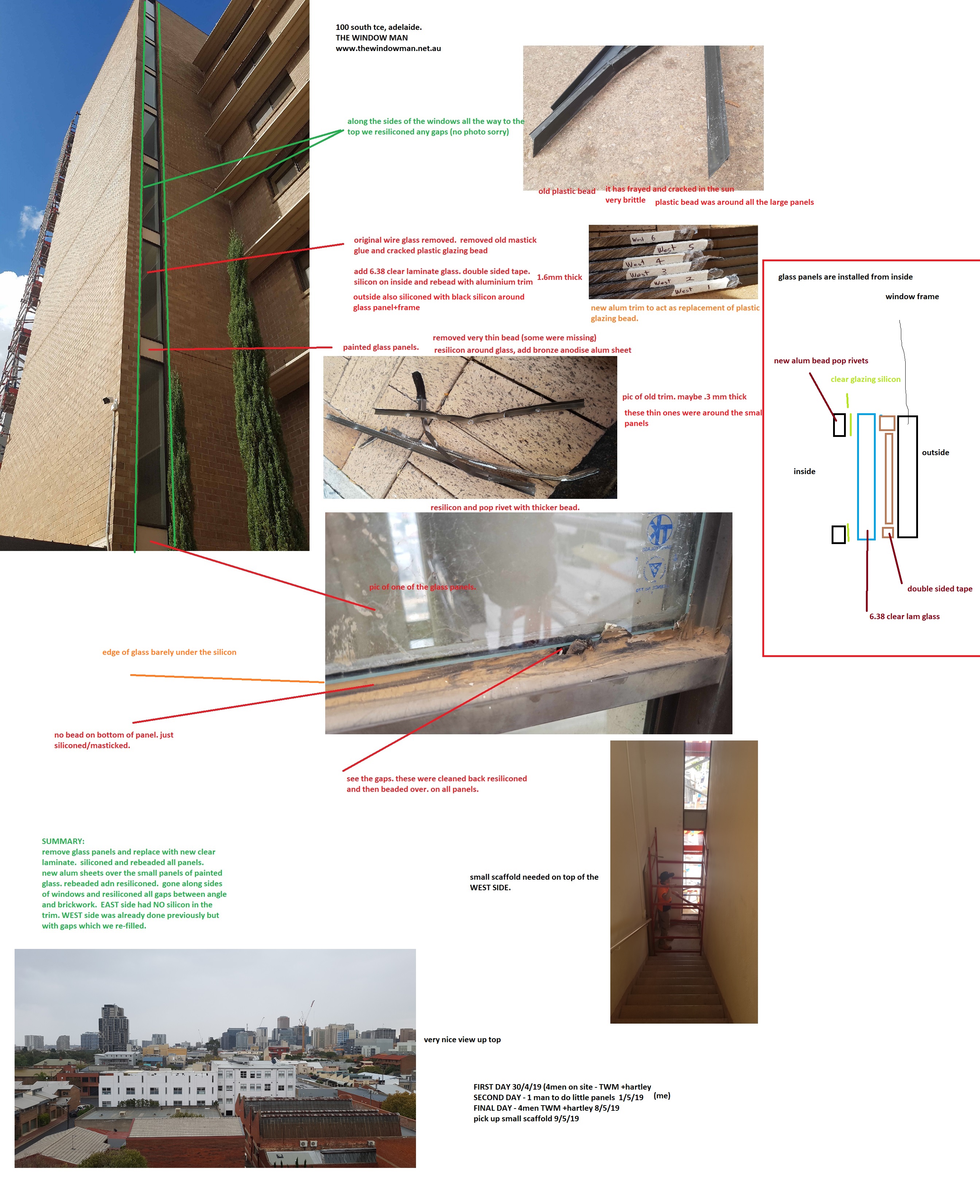We replaced fixed panels of glass along the full height of a stairwell – both west and east sides were replaced. the glass had been leaking into the stairwell. We replaced the glass, added new aluminium beads and resealed any gaps along the sides of the window.