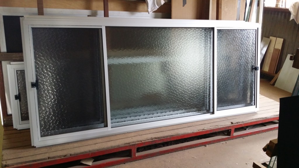 Here you can see one of the other windows, internal view. Notice the scissor winder hardware. Top panels of glass obtained from the wonderful team at the Glass Emporium, as per clients request.