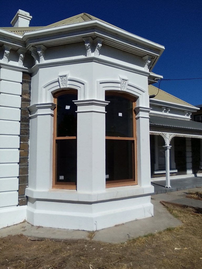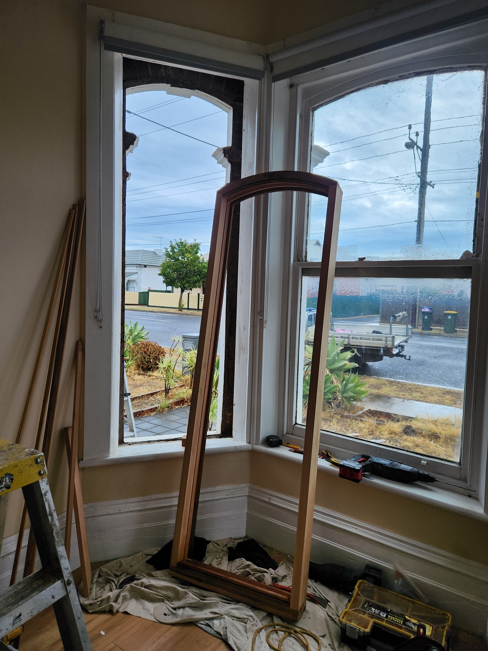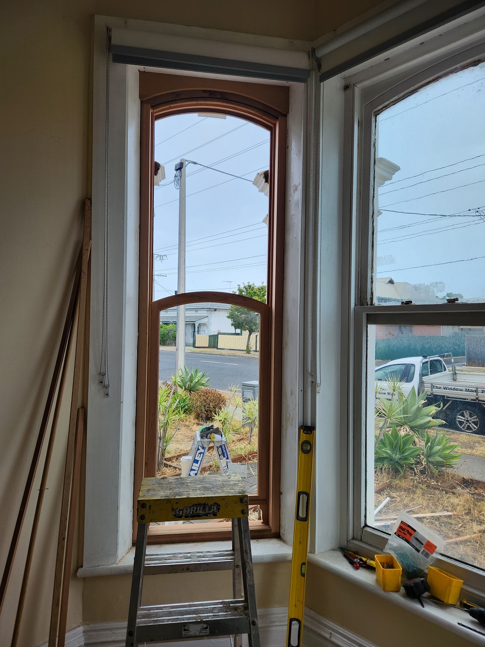 Last week we installed 3 arched sash windows we made to suit a home where the originals were rotting away. The original frames have 3mm float glass, the new ones are glazed with 6.5 hush laminate glass. The originals were proper boxframe sash windows; using weights and pulleys. The new ones use tensioned spiral balances to operate. We added flyscreens. Apart from that, pretty much like-for-like replacement. Took 2 full days to install, first one in the rain 🙂